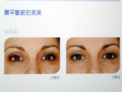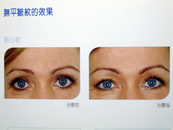 Botox: 可放鬆過度收縮動態皺紋肌肉。適用於消除動態表情皺紋如魚尾紋,皺眉紋和額前抬頭紋。