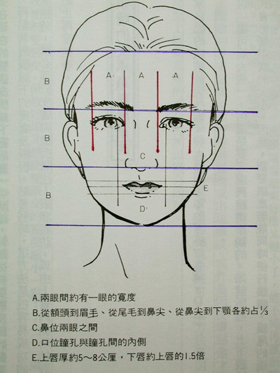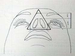 將面部分為三個部份,正常的比例是前額髮線至眉毛佔1/3,眉毛至鼻尖佔1/3,鼻尖至下巴尖佔1/3。最為理想的鼻形是鼻長佔面長的三分之一